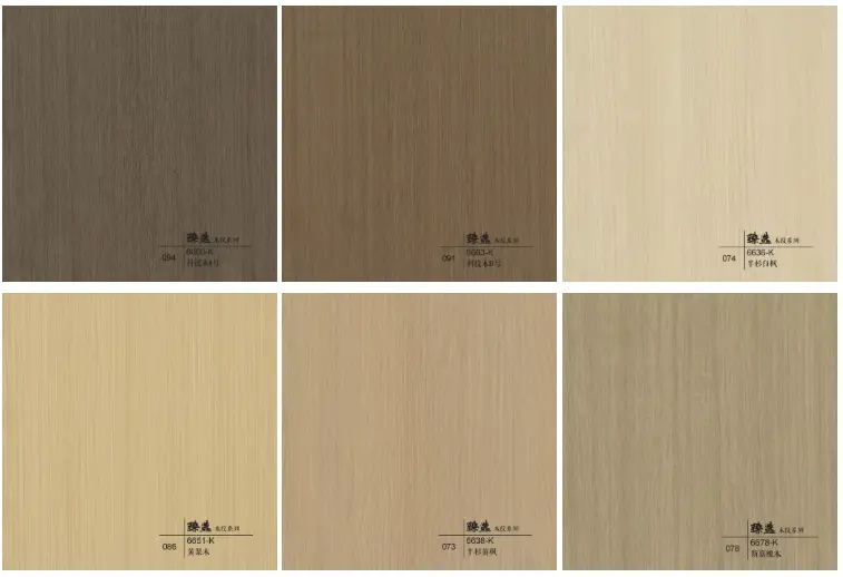 · Leverandør Teknisk support: Dekorativ trekornfilm for skapvegg har høye krav til produksjonsprosesser. Leverandører er pålagt å gi detaljerte tekniske parametere (for eksempel oppvarmingstemperatur, vakuumtid osv.) Og støtte.