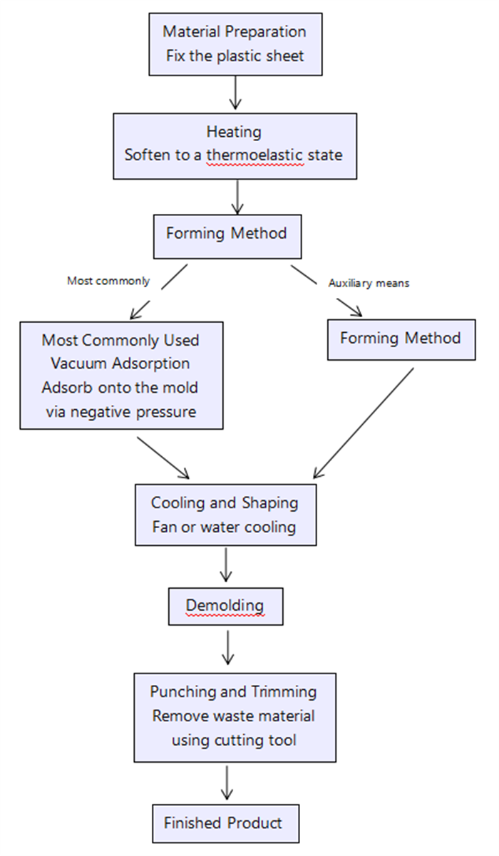 Kjerneprinsipp: Varm opp og myk opp plastplaten, bruk deretter vakuum for å adsorbere den på formoverflaten, og den vil ta form etter avkjøling.