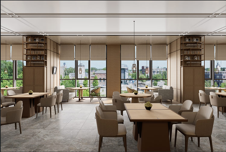 * Varme nøytrale farger: Karamelliserte toner som blander rødbrunt med modernitet, egnet for å skape et nostalgisk kommersielt miljø.